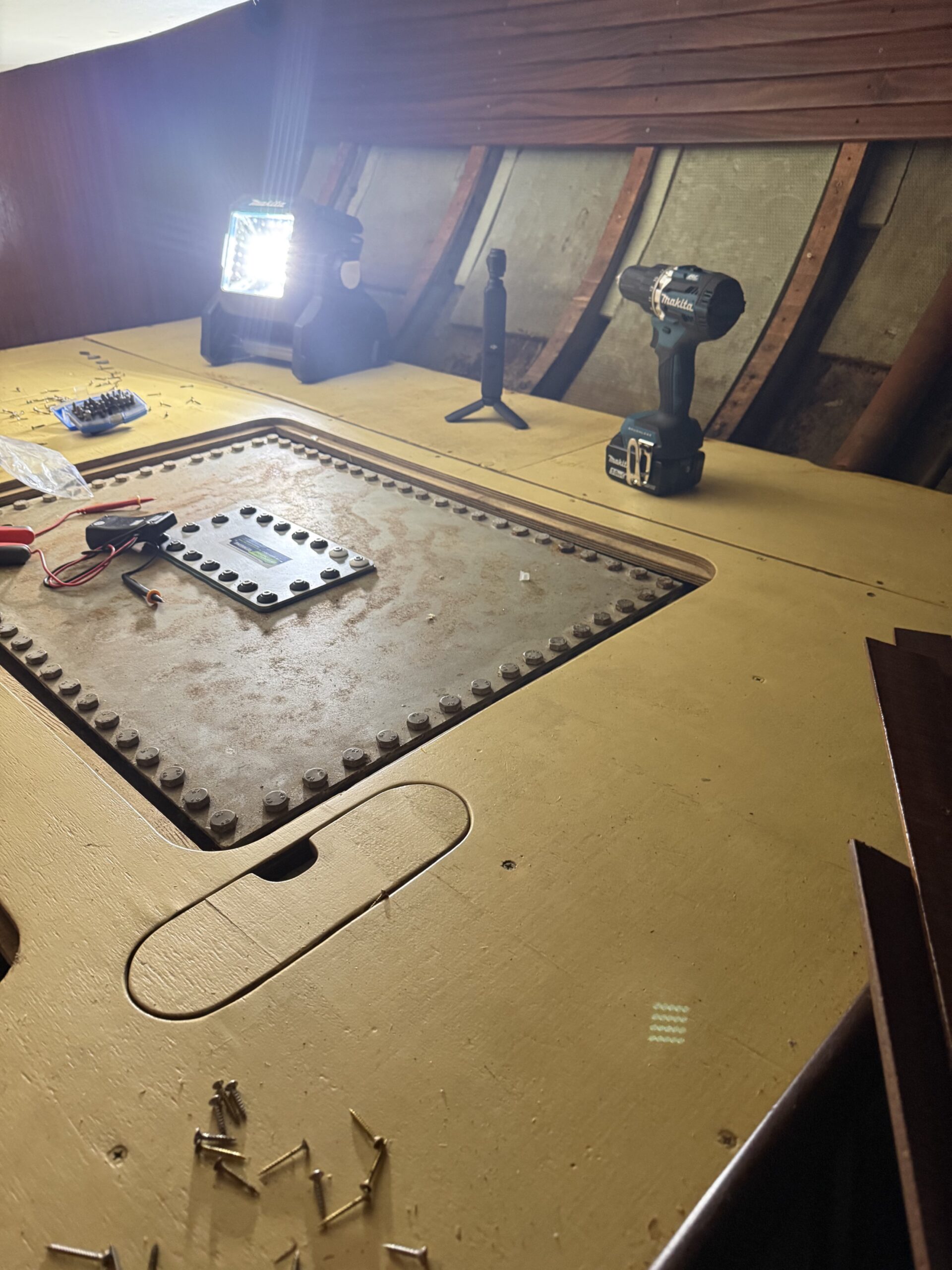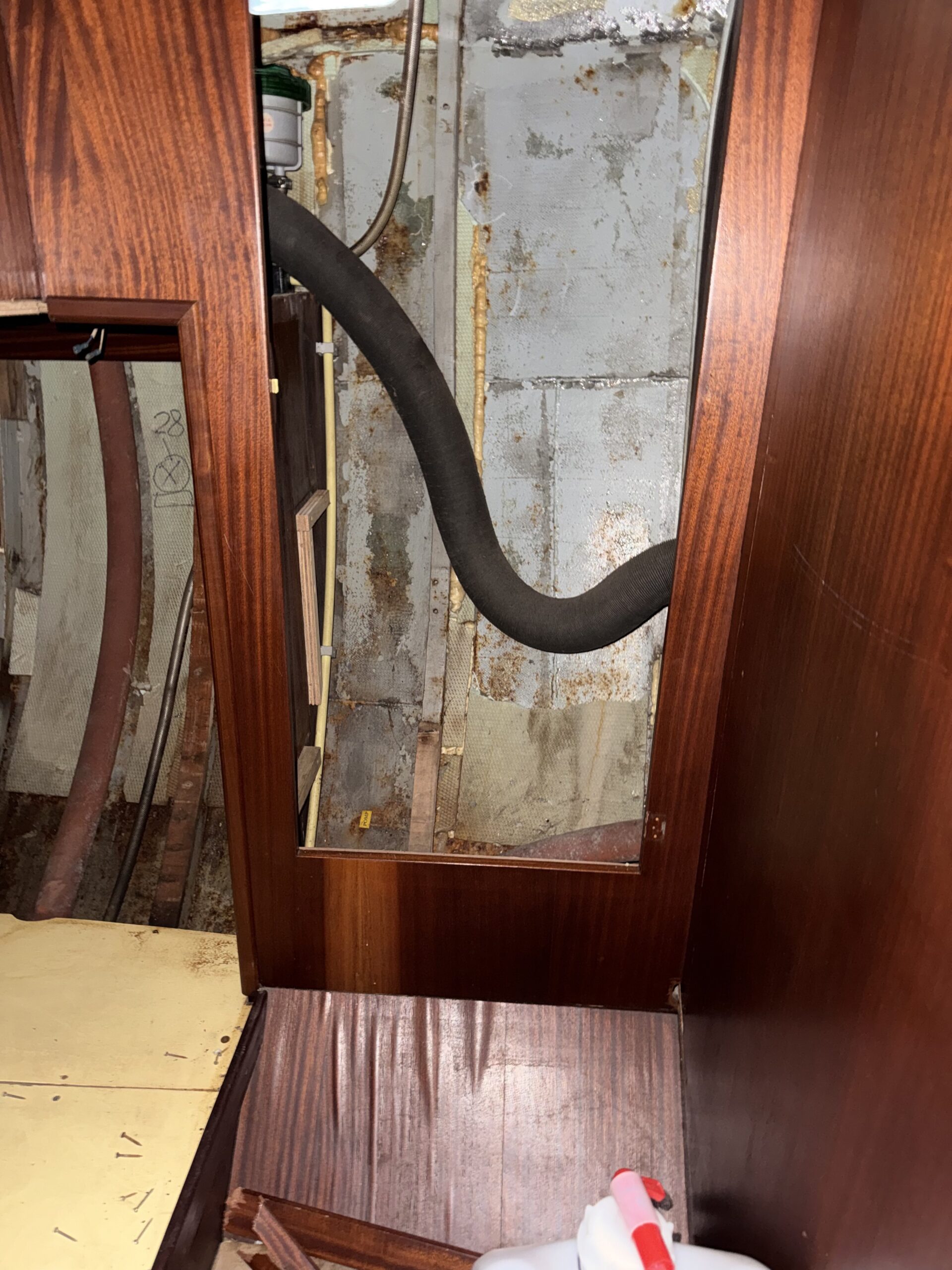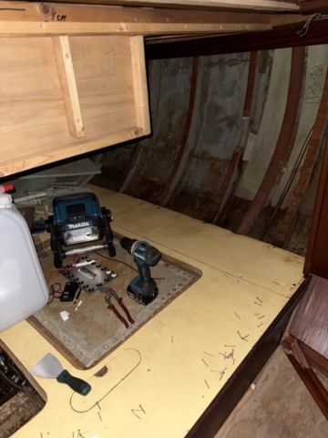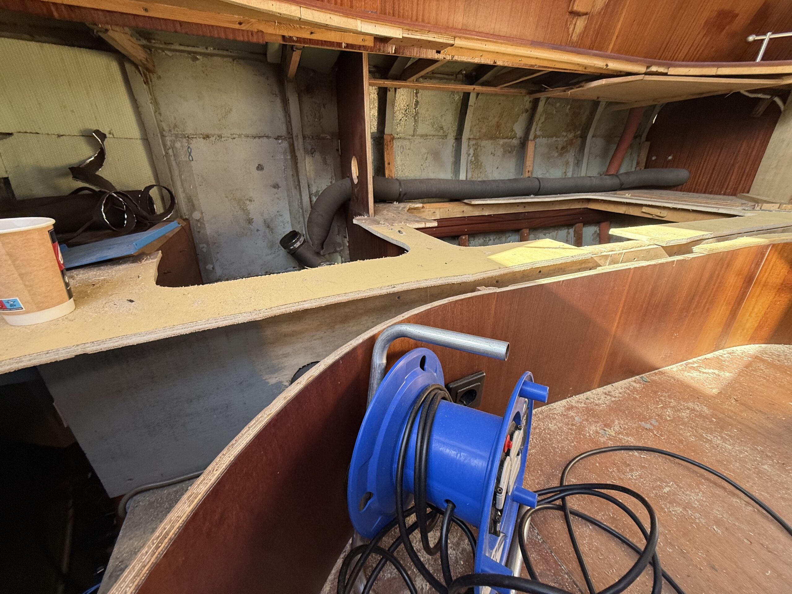 Ich habe mich durch Schichten von Holz, Laminat und Dämmmaterial gekämpft, die teilweise so fest verbaut waren, als hätten die Vorbesitzer Angst gehabt, das Boot würde sich bei Wellengang spontan auflösen.